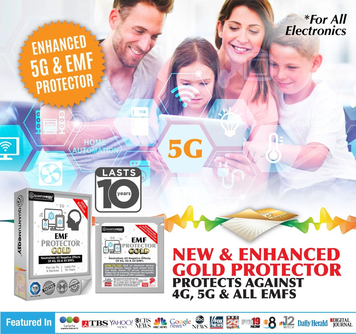 EMF Protector GOLD instantly eliminates any harmful effects of all types of EMF radiation, 4G & 5G (Electric Frequency, Electromagnetic Frequency, Radio Frequency & much more...)