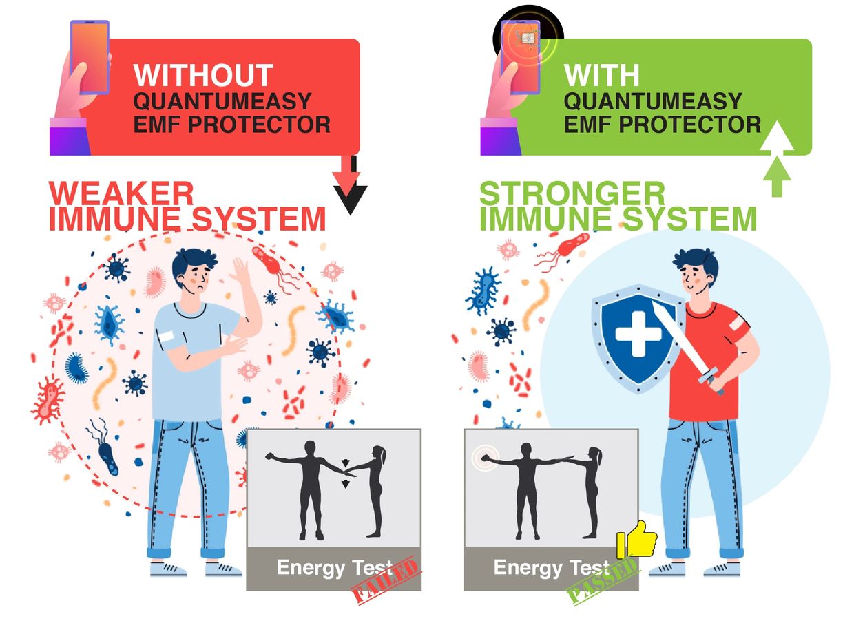 Witness how Electronic Radiation(EMFs) can affect your body with the Body-Stress Test(BST). Quantumeasy EMF Protector is the only known EMF Protector that passed extensive BSTs- proven to help you negate and neutralise the harmful effects of EMF radiations & 5G.