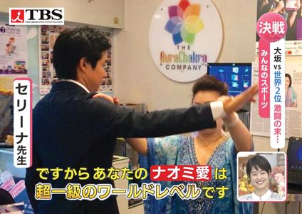 Selina Seah demonstrates the instant results of QuantumEasy EMF Protector on Japan’s TBS network